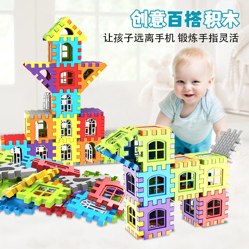 子供の大きな粒子の四角のプラスチックの積み木の家の益の知能の早教は幼稚園の男の子の女の子の城のおもちゃをつづり合わせます。