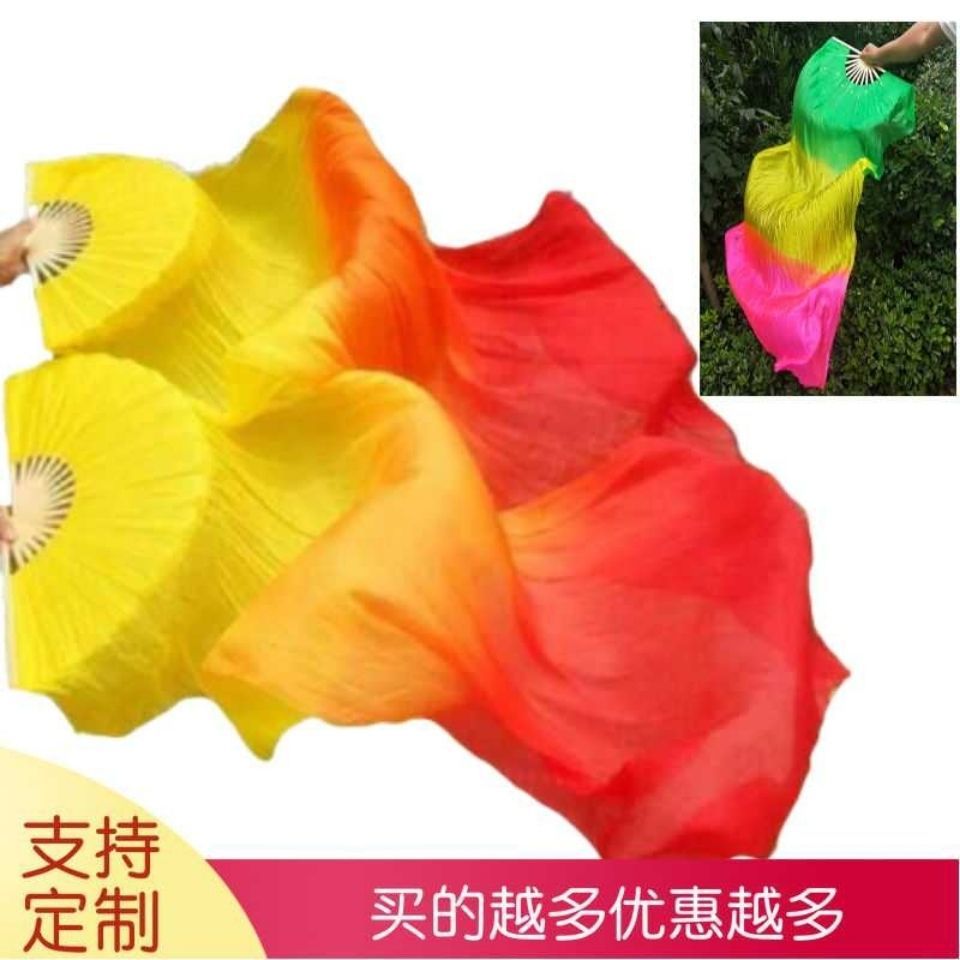 ダンスファン 3色グラデーション火炎ファン ロングシルクファン ロングダンスファン ヤンケロングファン ダンスファン