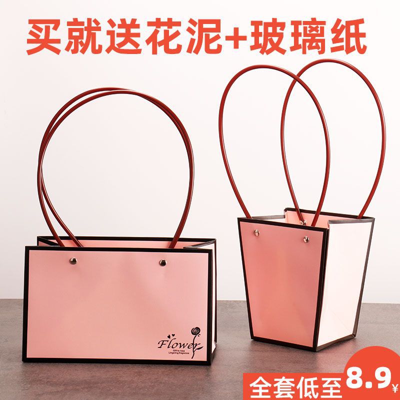防水フラワーハンドバッグ diy 手作りフラワーバスケットフラワーアレンジメント材料半完成フラワーアートサロンフルセットフラワーアレンジメントギフトボックス