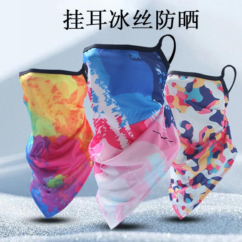 サイクリングマスク、ランニング日焼け止め、UV通気性耳掛け三角タオル、男性と女性の口と鼻の防塵ネックカバー