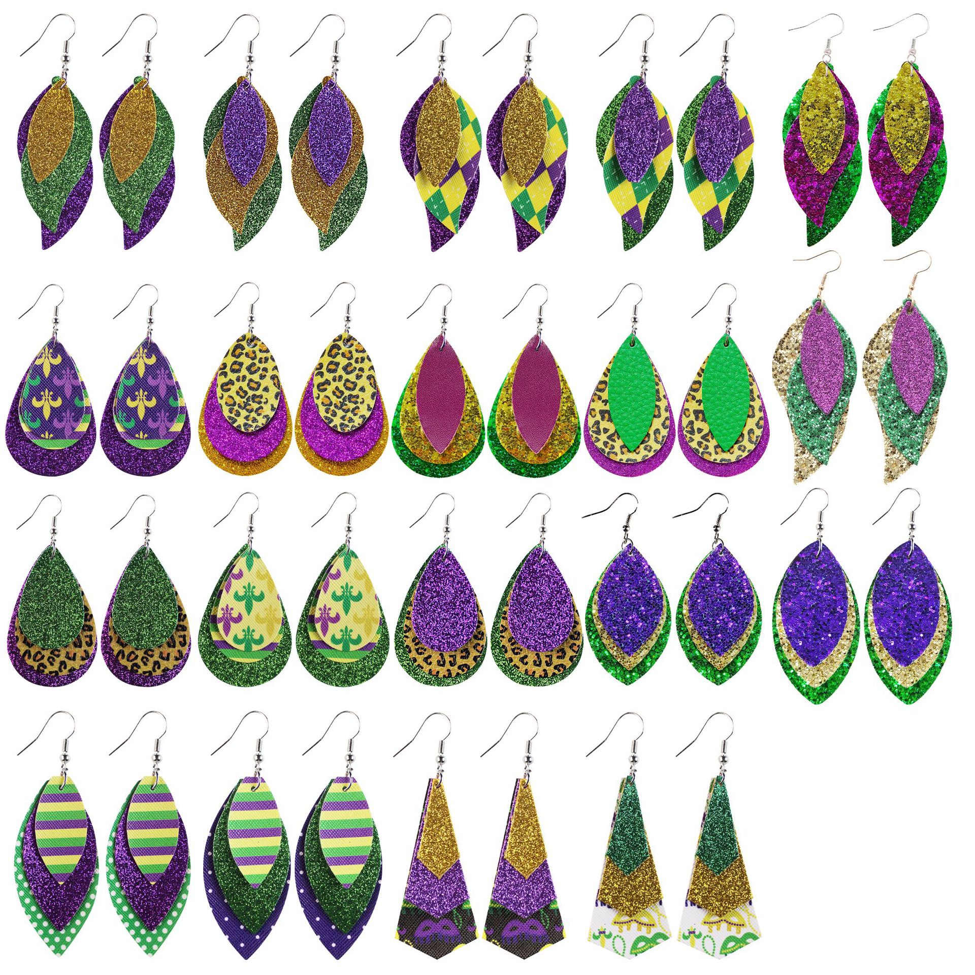 カーニバル三層革イヤリング十字紋片面プリント玉ねぎ粉細粉水滴木の葉クロスボーダーアマゾン