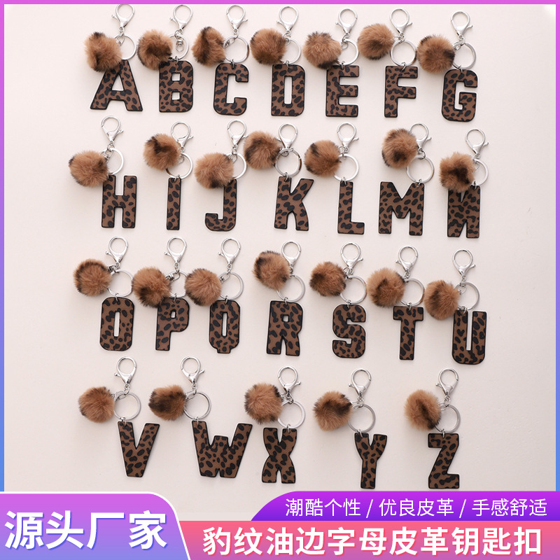 ウエスタンカウボーイスタイルヒョウ柄オイルエッジレターレザーアクリルキーホルダーぬいぐるみボールアクセサリークロスボーダーアマゾン