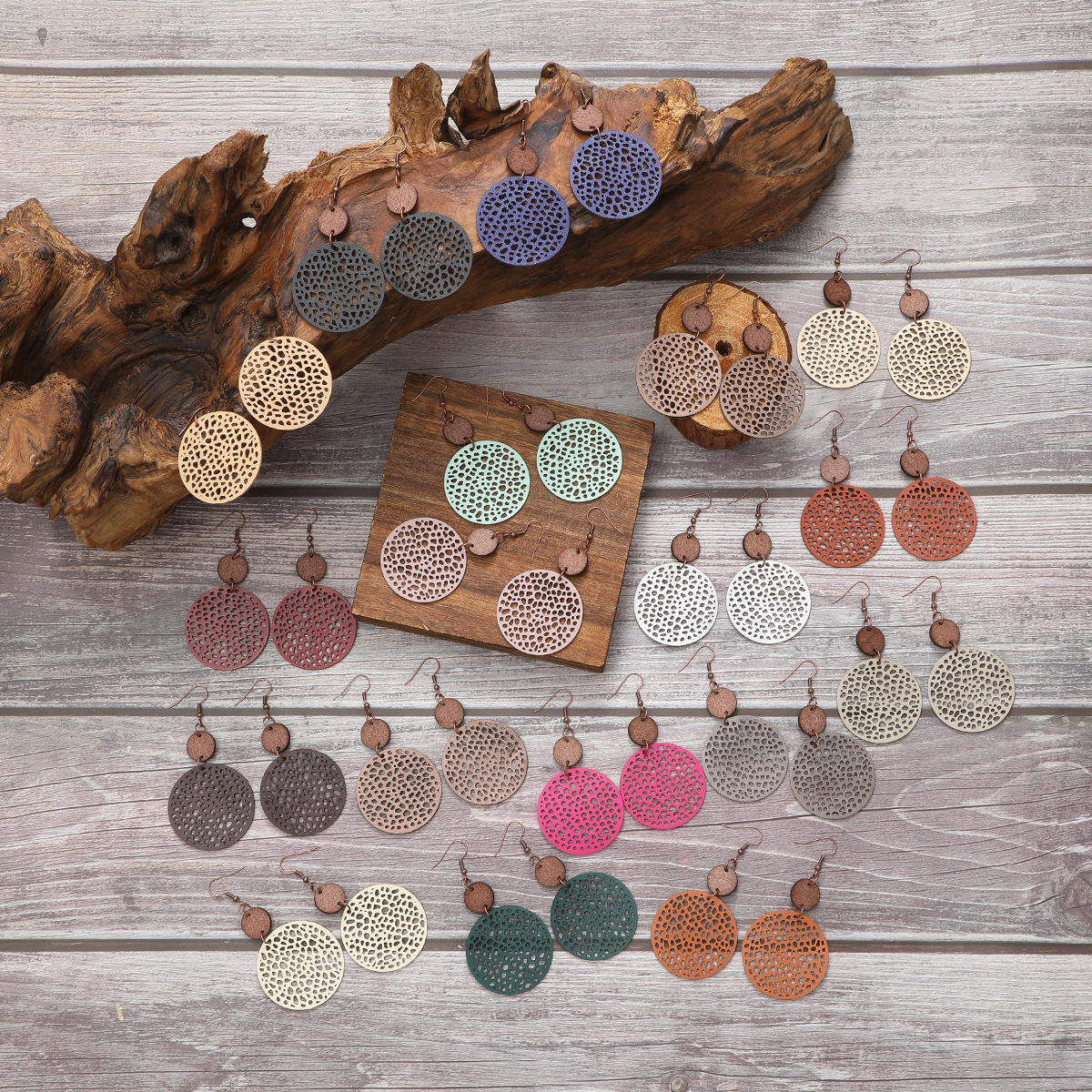 国境を越えた欧米の透かし彫りの革の組み合わせのイヤリングの復古的な手作りの小さい木片のイヤリングの速売はアマゾンの希音に通じます。