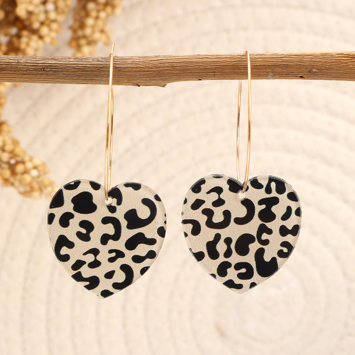 新しいバレンタインデーヒョウ柄ラブステッチアクリルイヤリングトレンディなヨーロッパとアメリカのファッションジュエリー女性のイヤリング