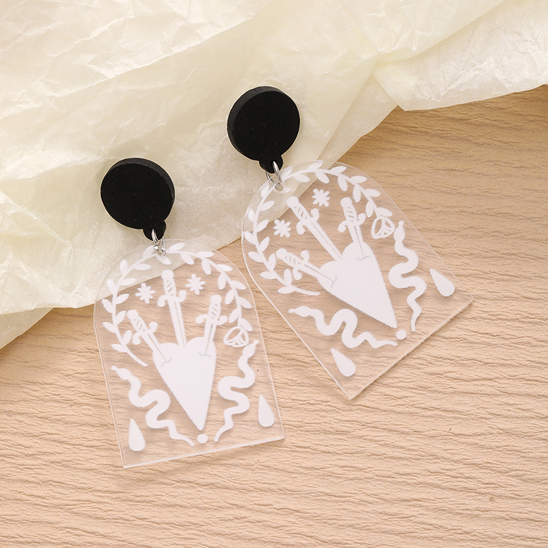 新しいリゾート風透明アクリル頭蓋愛白プリントピアス女性ファッション耳飾り