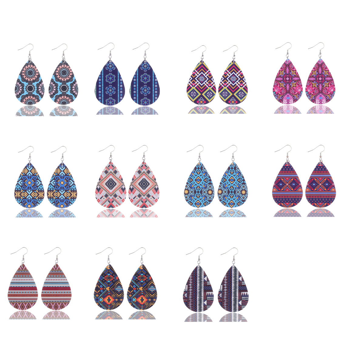 新品ヴィンテージ风ヒョウ柄水滴形サボテンペンダントpuレザーレディースイヤリング柄ランダム