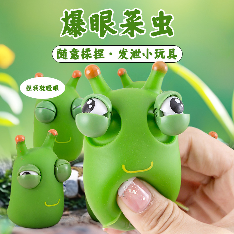 目を膨らませた小さな虫の減圧おもちゃ、ピンチ、インターネット有名人のクリエイティブな発散、目を丸くした面白い野菜の虫、子供の減圧アーティファクト