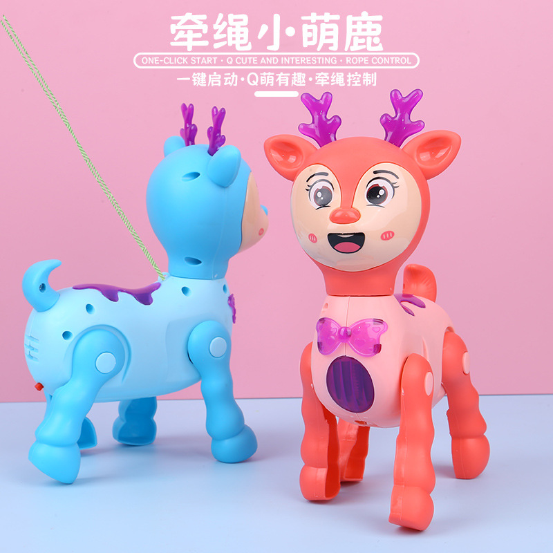 電気音楽リード、かわいい鹿、光るリード、子供用知育玩具、歩き方を学ぶ、幼児ギフト、リードで歩く