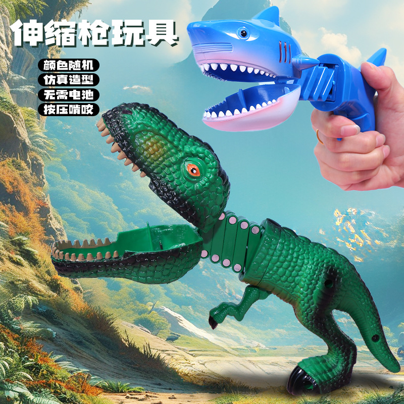 子供の恐竜サメピッカー伸縮スプリング銃男の子と女の子クリップクリエイティブ減圧トリックおもちゃ卸売