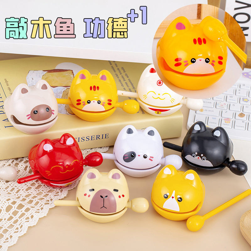 オフィスワークステーション用の小さな木魚の装飾品を解凍し、感情をコントロールし、安定させ、富を引き寄せるかわいい仏陀の手でノックする小さな木魚