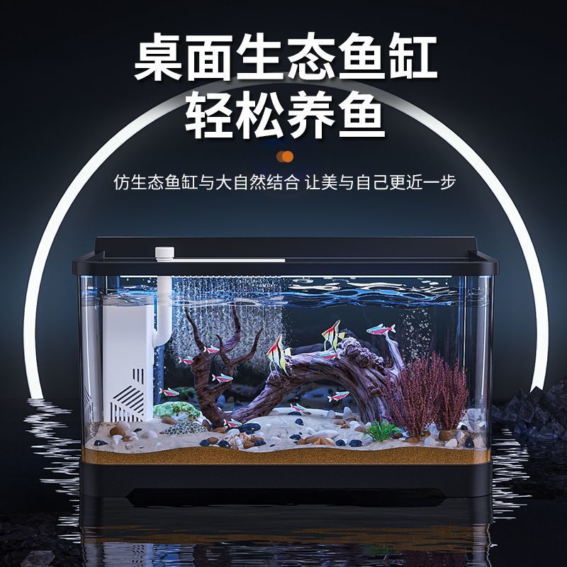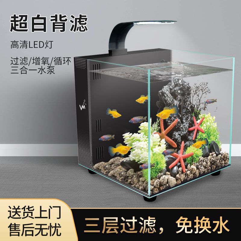 デスクトップ小型自動循環バックフィルタ静音無交換怠け者軽豪華超白ガラス小水槽造景水槽