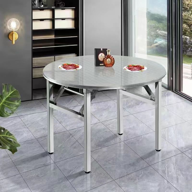 特厚304ステンレス円卓折り畳みテーブルステンレステーブル夜市バーベキュー酒席円卓食堂食卓
