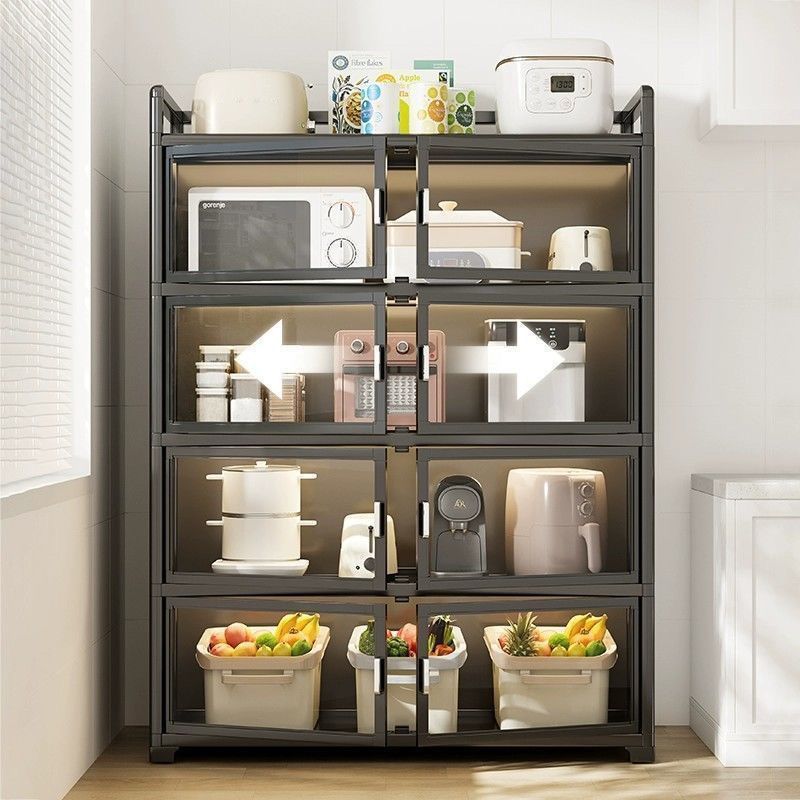 アルミ合金多機能バルコニーキッチンお茶サイドキャビネット簡易組立ダブルドア多層収納キャビネット