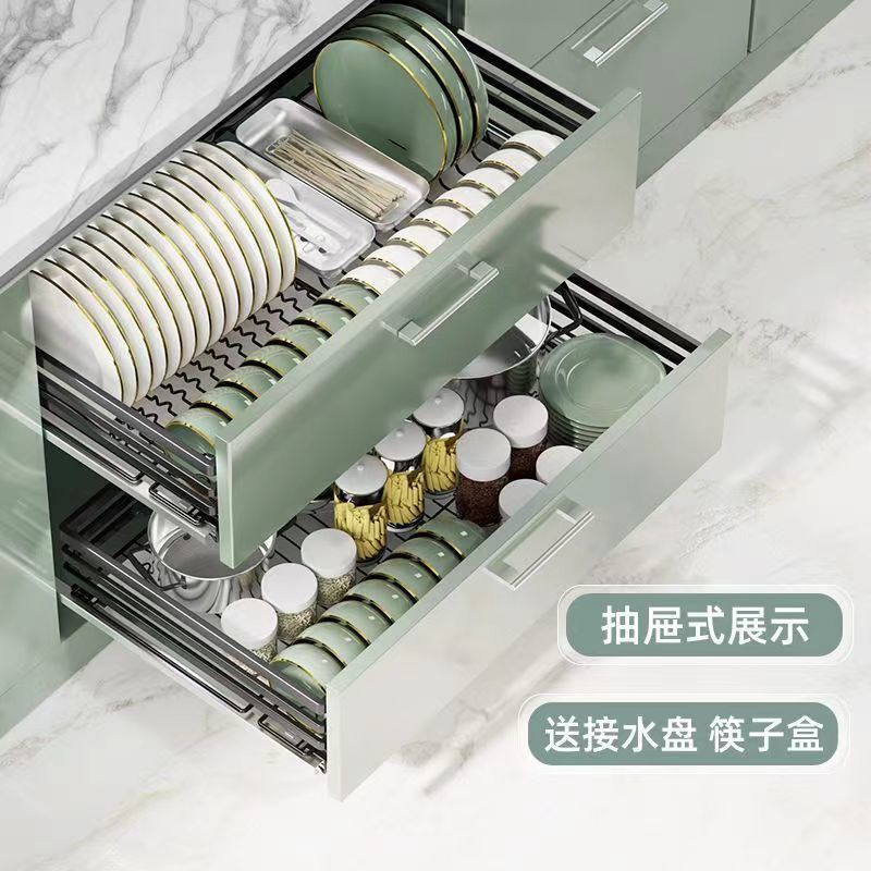 バスケット304ステンレス鋼中実ダンピング緩衝キャビネット引き出し食器棚二重食器皿台所食器棚