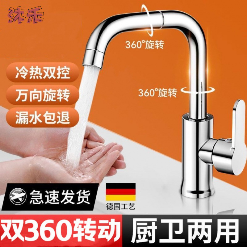 洗面器蛇口冷熱双用全銅トイレ洗面器万能回転蛇口浴室キャビネット洗面器