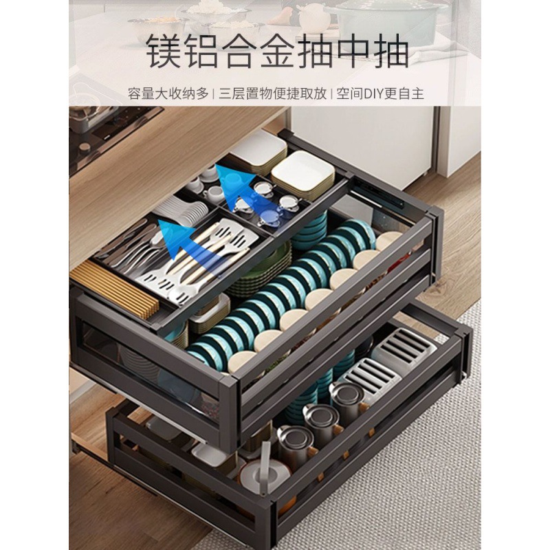 台所戸棚304ステンレス二重引き出し式食器棚ダンピング食器棚収納調味料