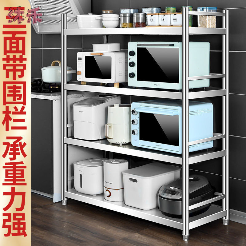 ステンレス多層収納棚フェンスキッチン棚床置き式多機能収納棚電子レンジ棚