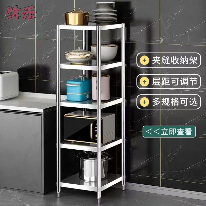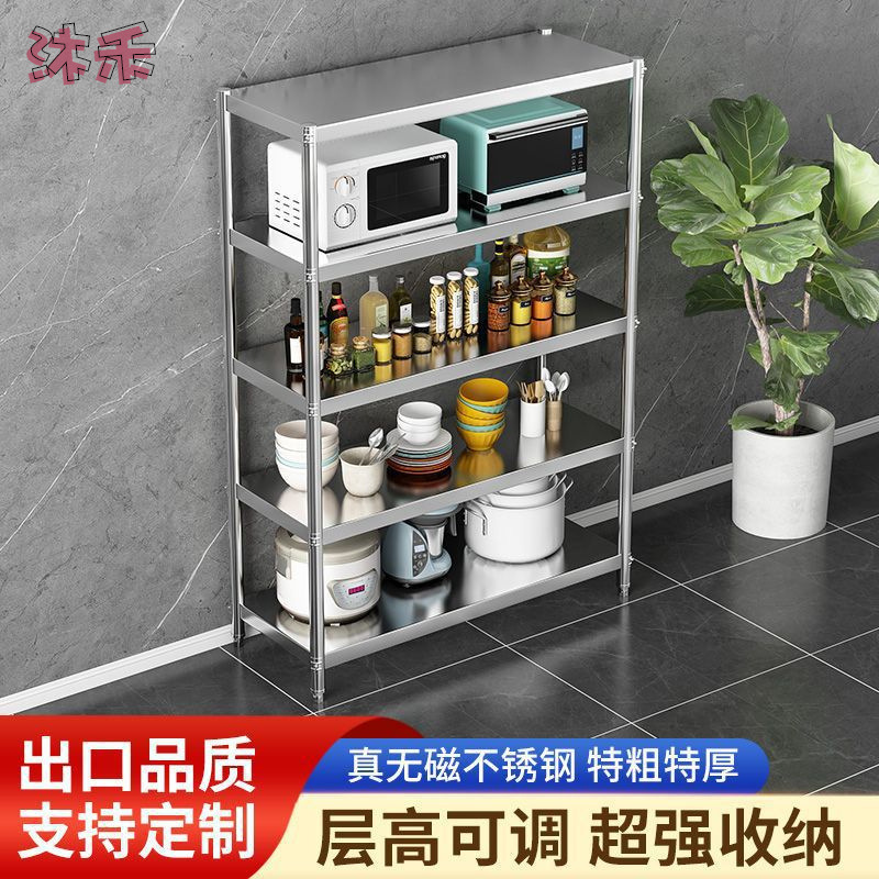 ステンレスキッチン棚床置き多層家庭用電子レンジ収納棚キッチン収納棚倉庫棚