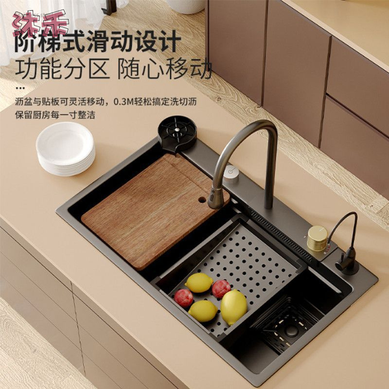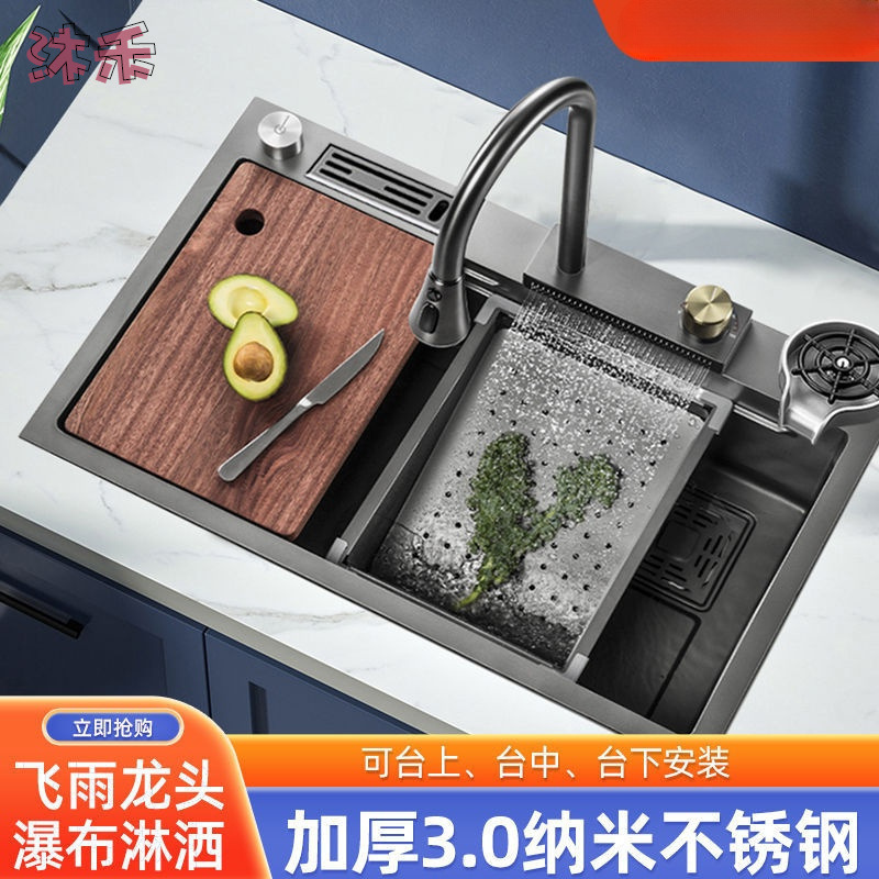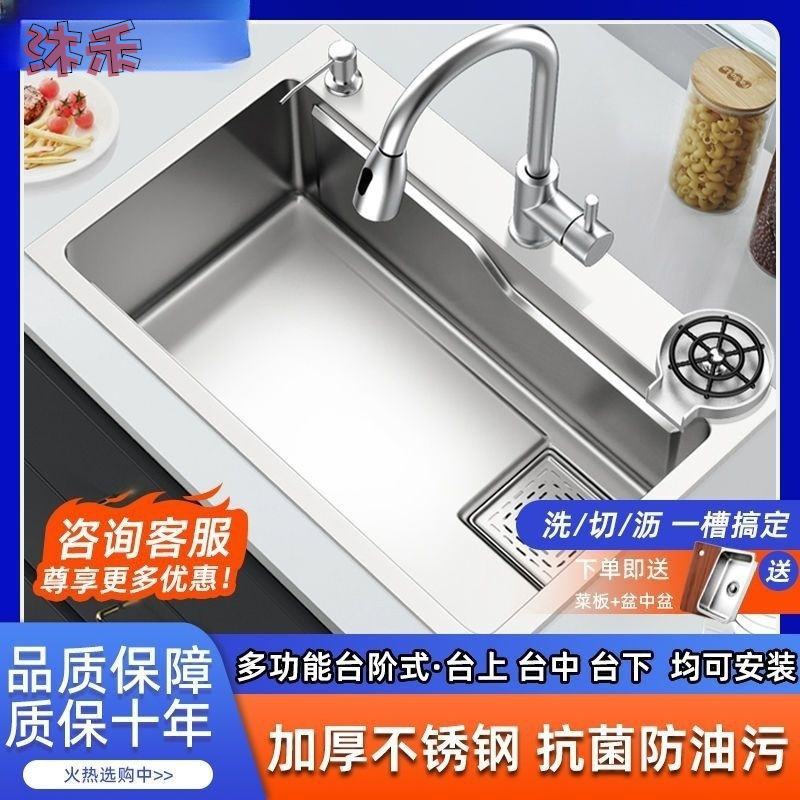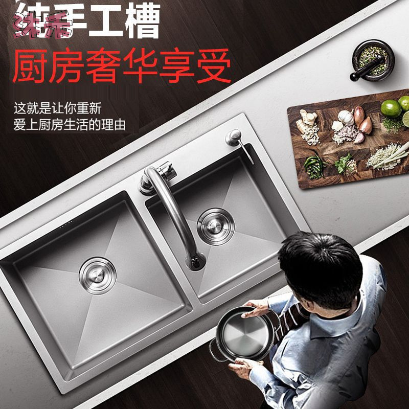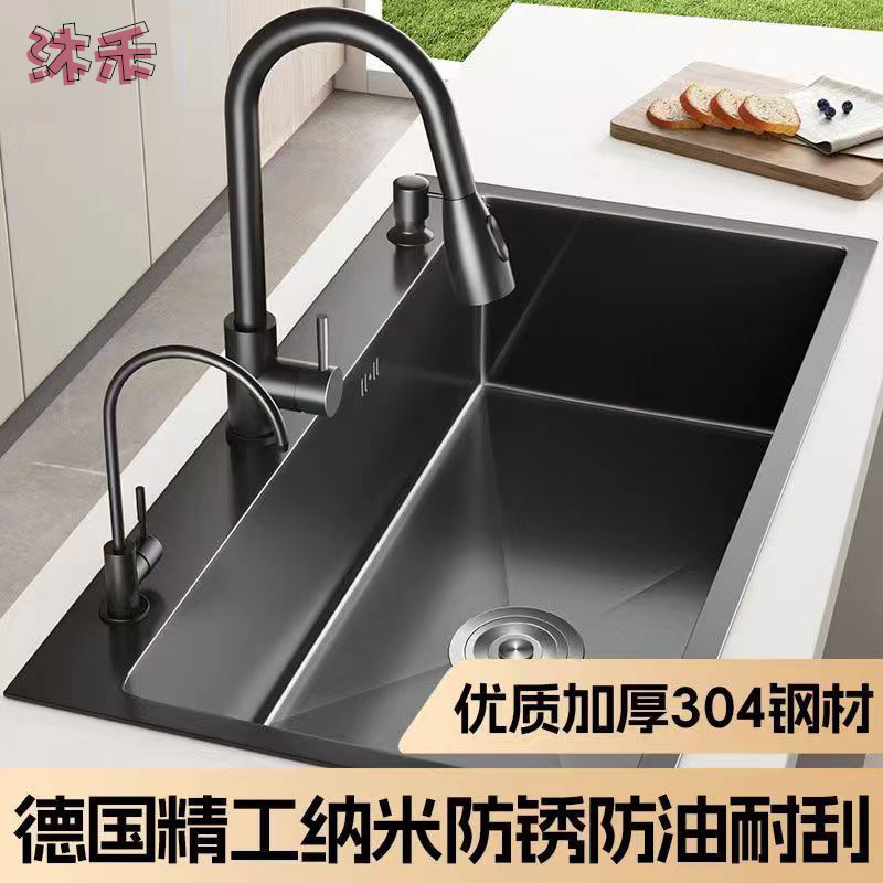 ステンレス黒ナノ水槽手作り大単槽厨房家庭用皿洗い池台下洗面器皿洗いセット