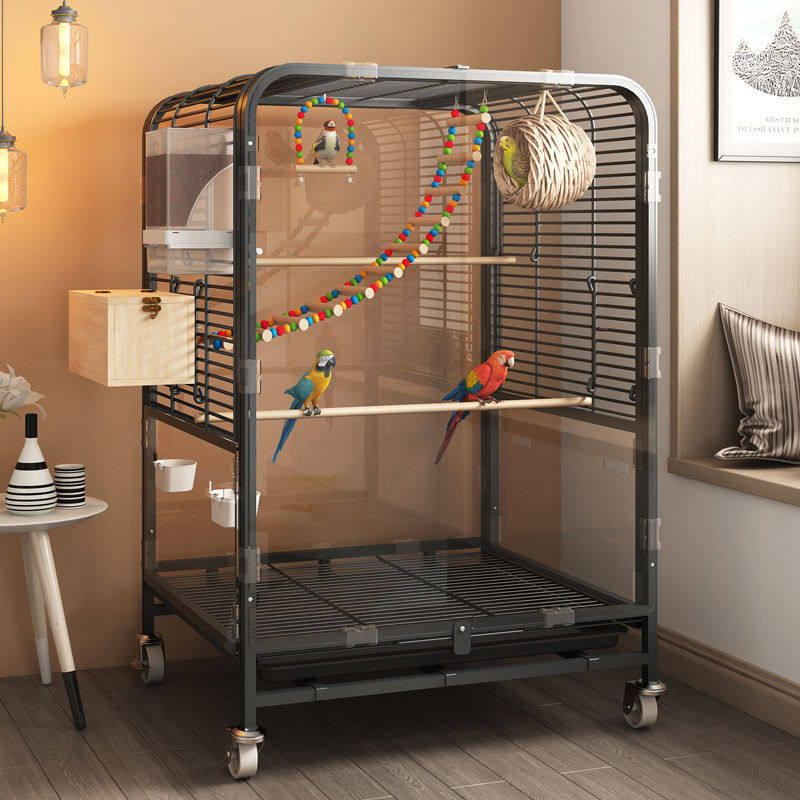 鳥かご大サイズ家庭用虎皮オウム豪華別荘新型真珠鳥防飛散専用透明鳥かご防飛散