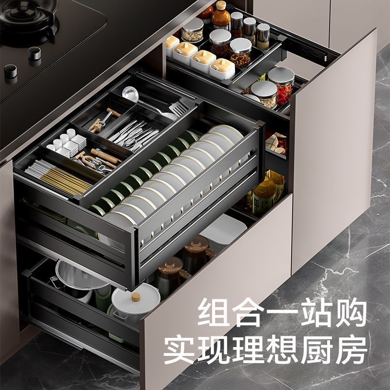 キッチン調味料引き出し式アルミ合金調味料バスケット底収納棚二重タイプ引き出し式