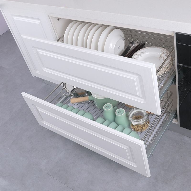バスケットステンレス二重緩衝キッチンキャビネット引き出し式食器皿バスケット