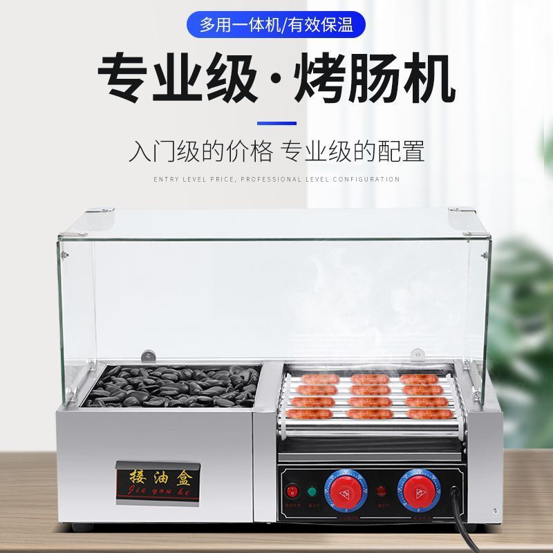 卓上式の腸焼き機は電気式のガスを挿してホットドッグを並べます。