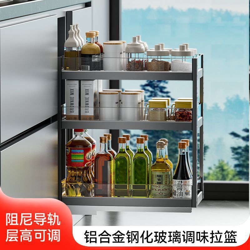 引き出し式キッチンキャビネット調味料バスケット非常に狭い引き出しキャビネット小型ステンレスガラス調味料バスケット