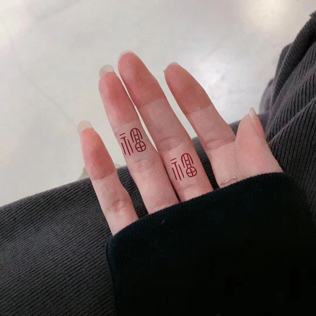 赤いお祝いの福の字の紋章は使い捨てで水洗いできる小さい図案の男女の手首の指の小さい清新な紋章を貼ります。