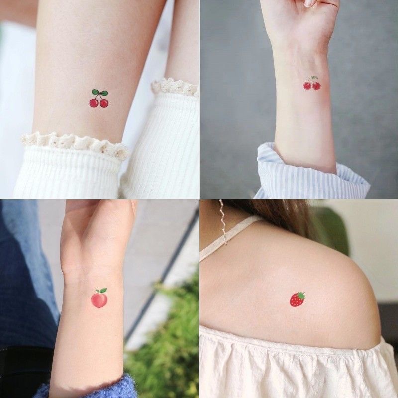 Ins風小清新いちご果物模様のタトゥーは防水持続的な腹を切るさくらんぼ少女心漫画シールを貼っている