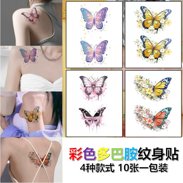 ドーパミン蝶入れ墨ステッカーカラー高级感ファッション小さな新鲜な防水永続的なリアルなins入れ墨ステッカー
