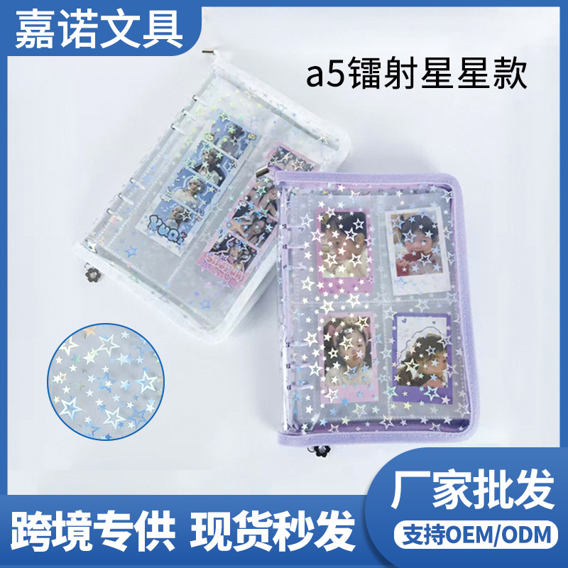スポット A5 ファインフラッシュフォトアルバムルーズリーフブック透明カードアルバムジッパールーズリーフブック取り外し可能な 6 穴スター追跡カードストレージ