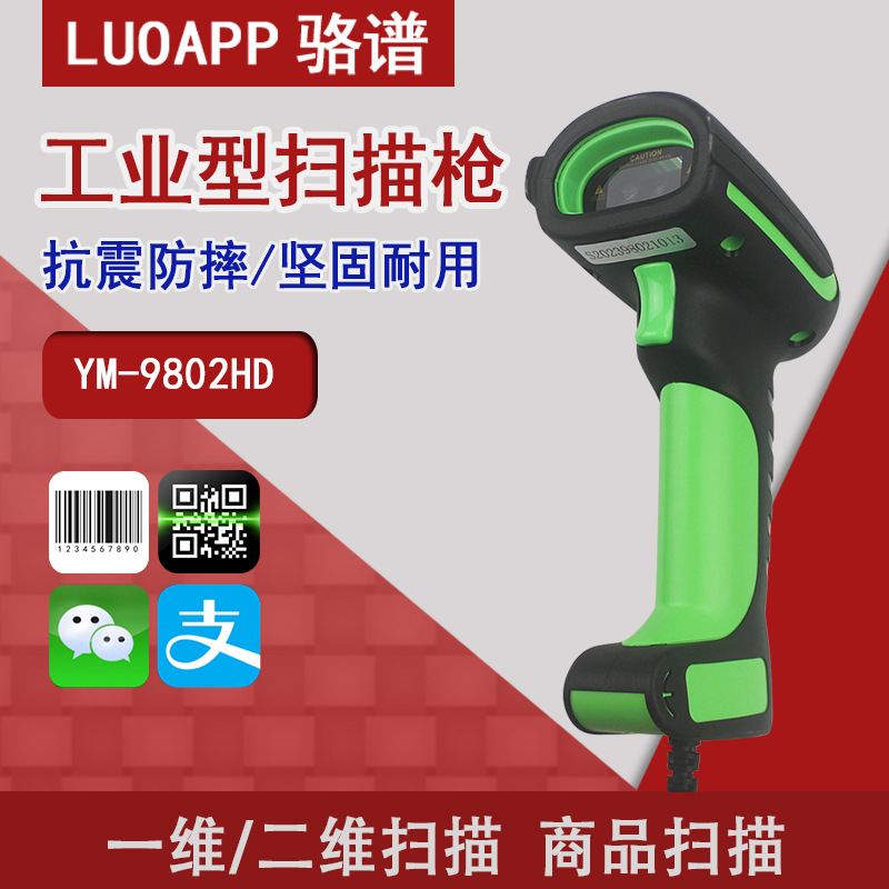 駱譜スキャン銃バーコードスキャナーYM-9802HD工業級二次元有線倉庫物流スキャン銃