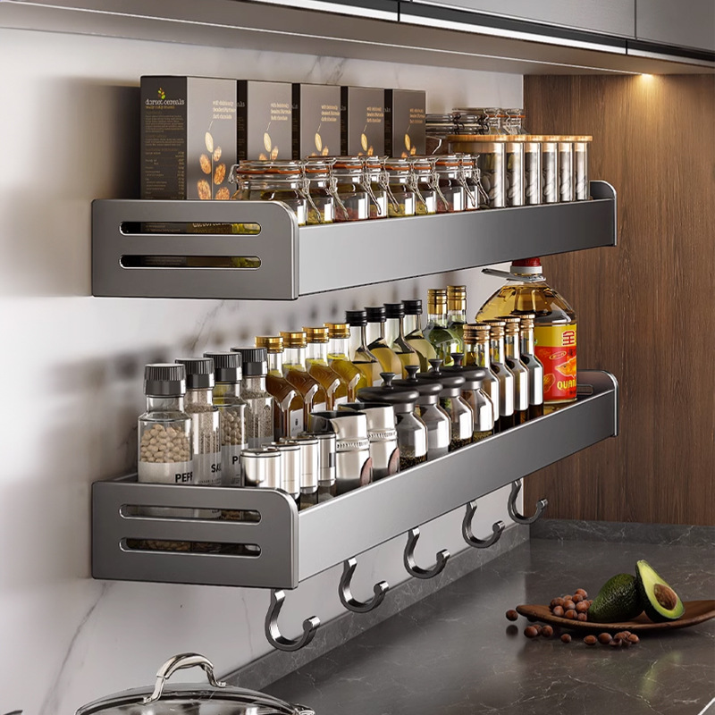 穴あけ不要のキッチン収納ラック 壁掛け調味料ラック 箸・ふきん・ナイフ・食器ラック ステンレス製