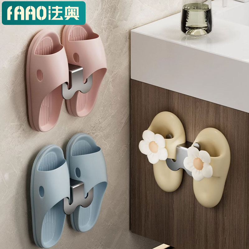浴室用穴あけ不要壁掛けスリッパラック、トイレ用スペースアルミ製スリッパラック、滑り止め多機能収納ラック