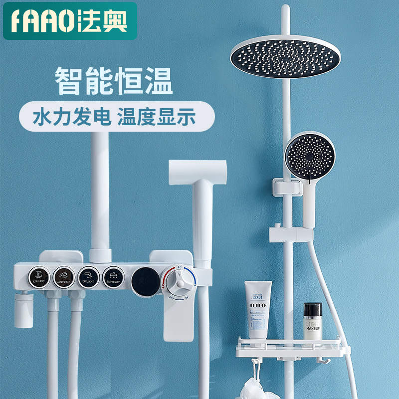 浴室用真鍮製シャワーヘッドセット 家庭用浴室用白色恒温デジタルディスプレイシャワー ヘッドセット