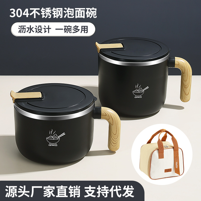 インスタントラーメン専用ボウル304ステンレス製インスタントラーメンボウル蓋付き高颜値ハンドル付き茶碗寮用学生