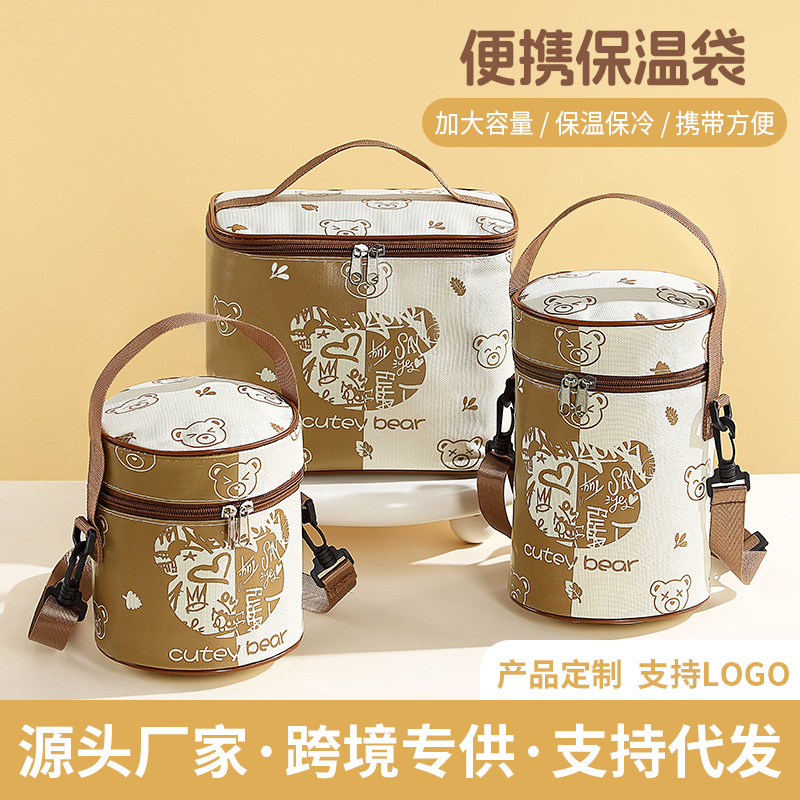 壱麦児童弁当箱手提げ袋多層保温小学生防水手提げ袋食器バッグ手持ち保温袋弁当