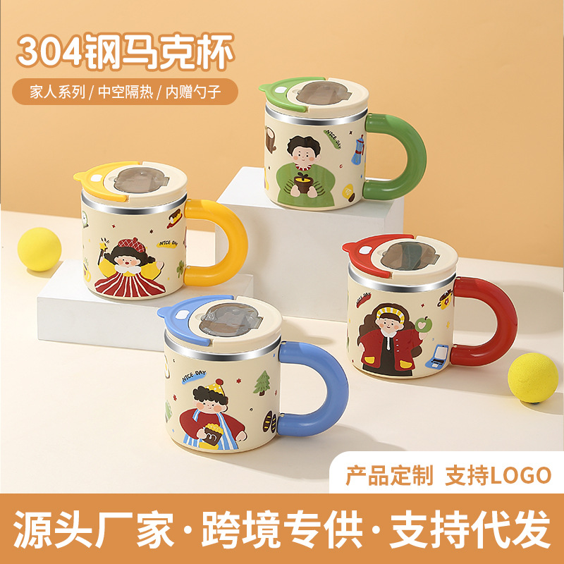すごい!カスタムメイドの304ステンレス製ミルクカップ、漫画柄マグカップ、二重断熱ドリンクカップ、食品グレードのウォーターカップ