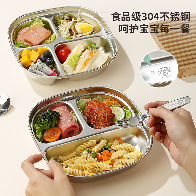 304ステンレスプレートの特別メニューの子供の幼稚園のトレーの食堂のレストランの四角形の補助メニューの皿は食事の皿を打ちます。