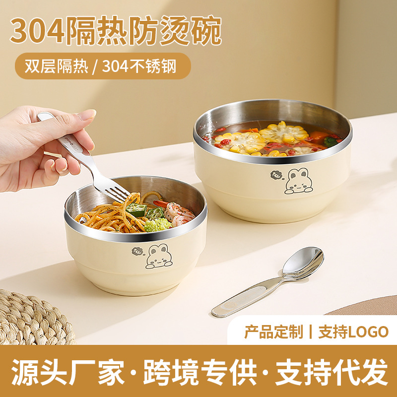 304ステンレスボウル子供食事ボウル家庭用転倒防止厚手カートンボウル二重断熱断熱断熱スープボウル