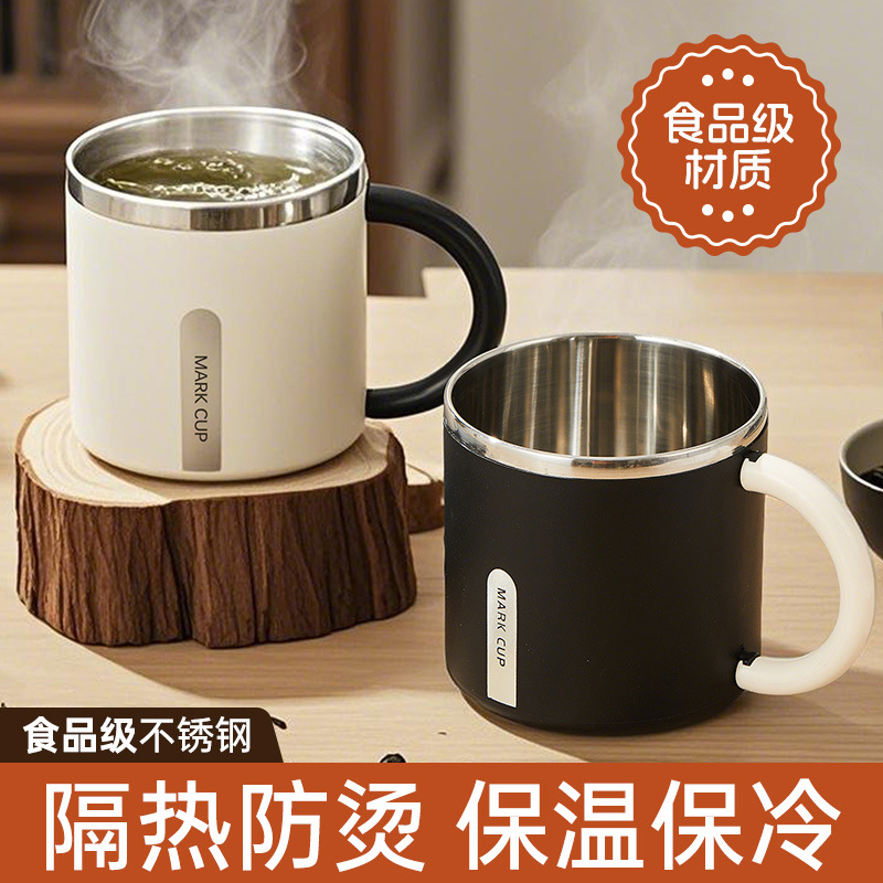 保温カップコーヒーカップ304ステンレス高颜値オフィス外にコップを持っている男女の携帯旅行を持っている