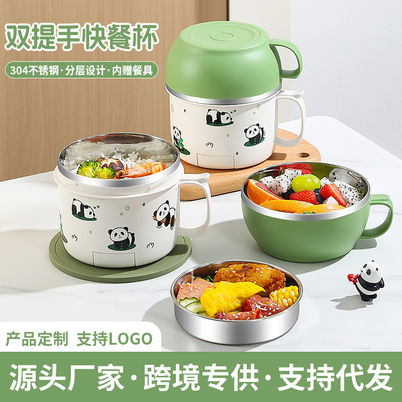 保温カップ304ステンレス朝食粥カップオート麦豆乳牛乳スープ缶ポット携帯外蓋付きスプーン朝食カップ