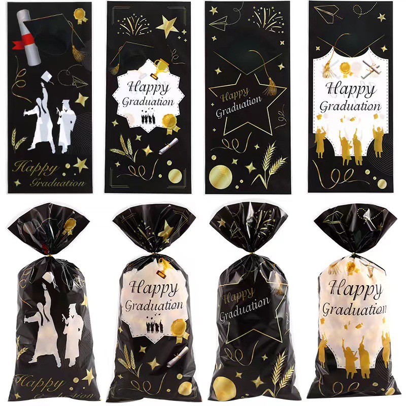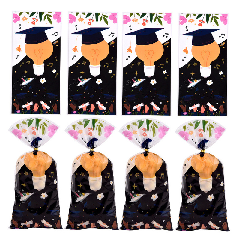 卸売り50個卒業帽電球平ポケットチョコレートクッキーキャンディーギフトバッグ食品包装袋