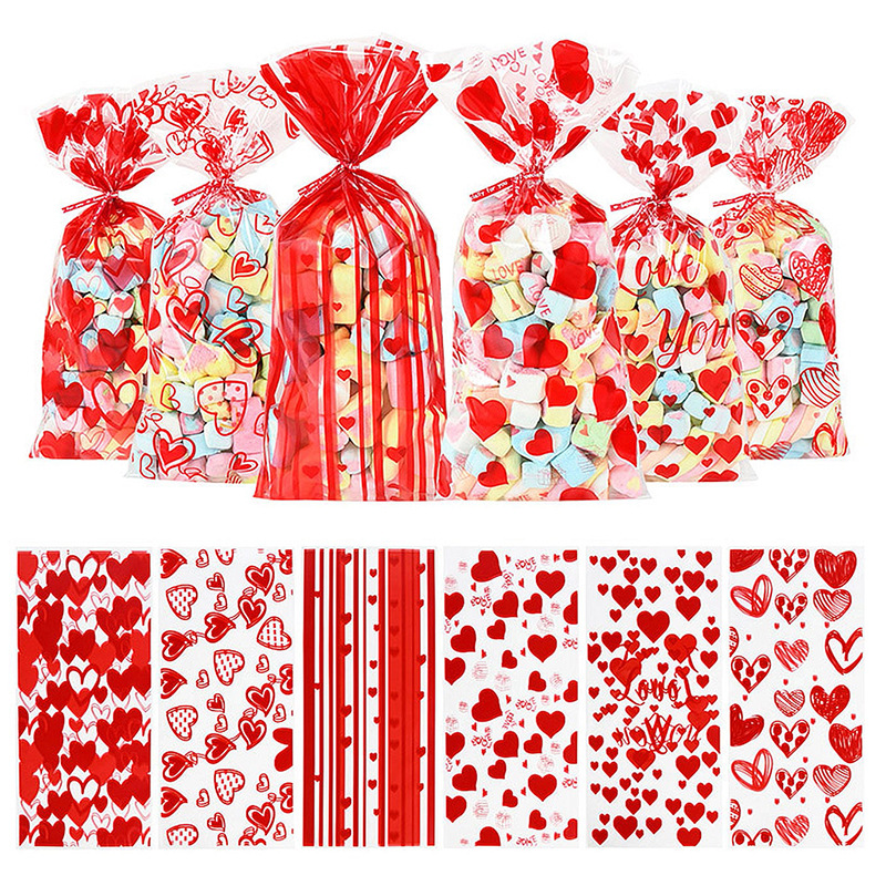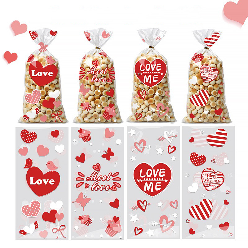 50個の混合バレンタインデーOPP透明愛ギフトバッグキャンディークッキー食品袋平口包装袋