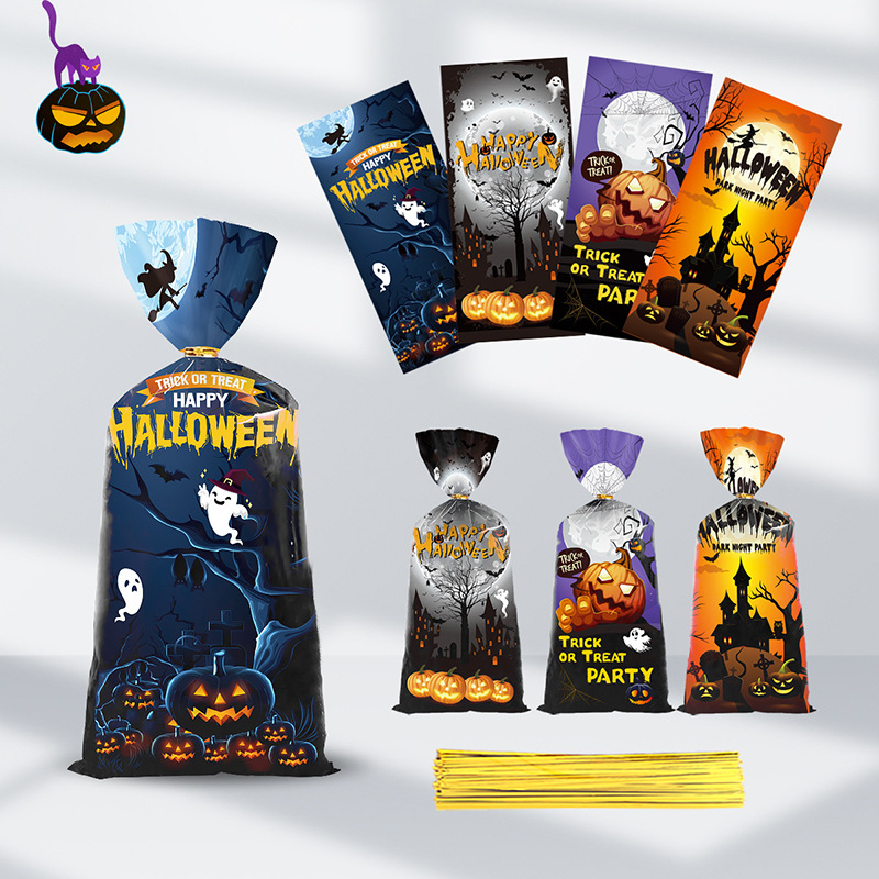 50個のハロウィーンoppフラットポケットクッキーキャンディーチョコレートギフトバッグベーカリー食品包装袋
