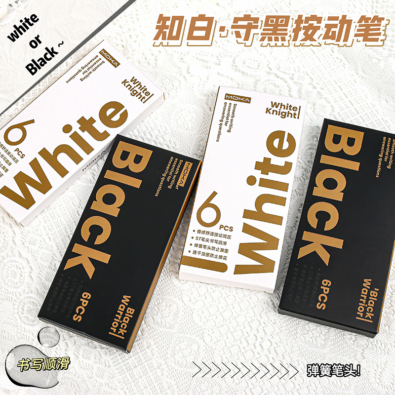 黒戦神白騎士押しペン速滑中性ペン高颜値サインペン学生文房具低重心ブラシ問題ペン