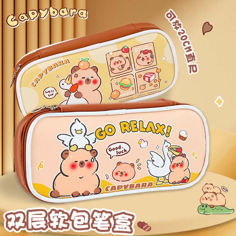 カピバラ筆袋かわいい漫画学生二重鉛筆袋文房具収納袋大容量多機能文房具