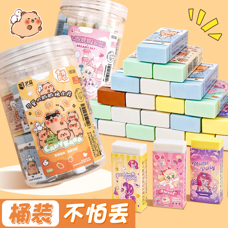 カピバラ消しゴムのカラーバケツはきれいに入れられています。