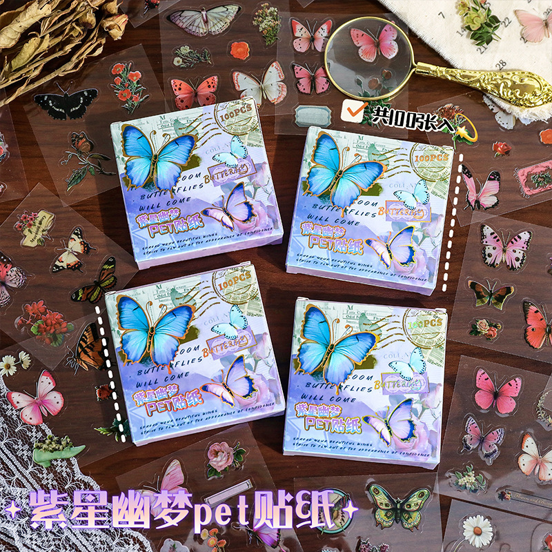 紫星幽夢蝶ステッカー創意手帳ステッカーレトロ蝶PETステッカーセット装飾素材ステッカー